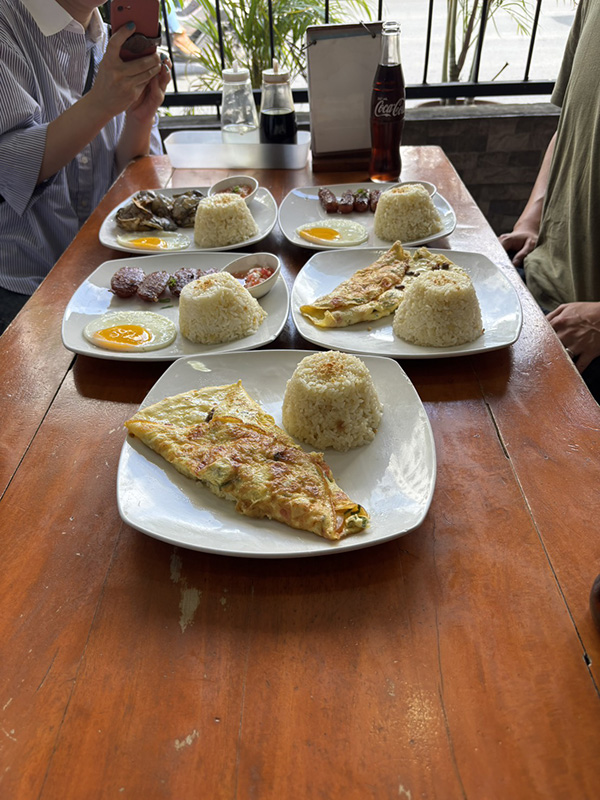 フィリピンの定番朝食**「Silog (シログ)」の専門店です!シログとは、お肉と目玉焼き、そしてガーリックライス(Sinangag)**がセットになった最強のワンプレート。ニンニクの香りが食欲をそそります。